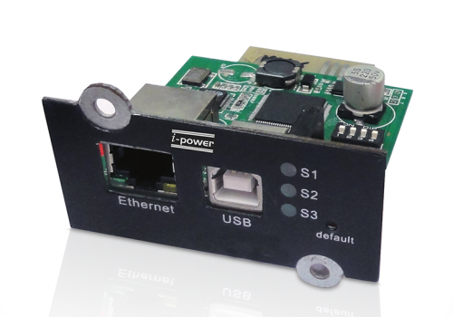 The i-power SNMP adaptor/card is a monitoring and managing system designed for net manager card. The SNMP card functions as an SNMP agent and allows UPS management through a LAN (Local Area Network); the accessory supports all the main network protocols (SNMP, TCP/IP, HTTP and so on) and is compatible with Ethernet 10/100Mbps IPv4/6 networks. This means that one industry standard management tool can be used to monitor and control all UPS systems from one central location, and power management can now be integrated into the existing network or building management strategy. Alarms (‘traps’) can be configured to ensure automatic notification of events such as low battery, power outage or overload. Management Input Base (MIB) are included with the product for integration into your system management software.
